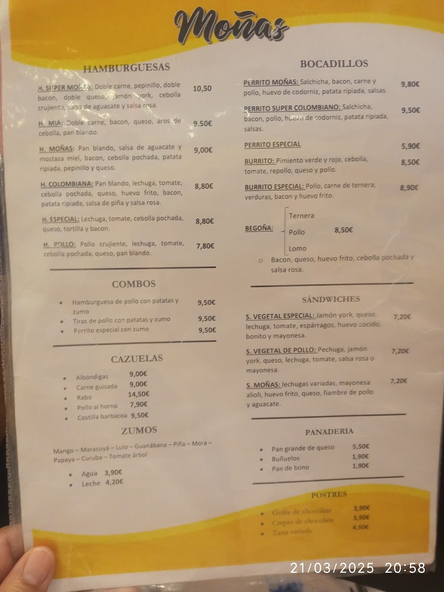 At Restaurante Moñas, the menu offers a welcoming blend of hearty, home-style Colombian dishes and familiar family favorites, all served in a relaxed and spacious setting. Whether you're stopping by for a casual lunch or gathering with loved ones for a comforting dinner, the choices invite a sense of shared enjoyment and simple satisfaction.